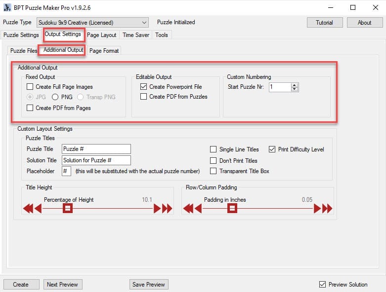 Creating a PDF or Powerpoint file is called ‘Additional Output’, because the puzzle files are the primary output of Puzzle Maker Pro.