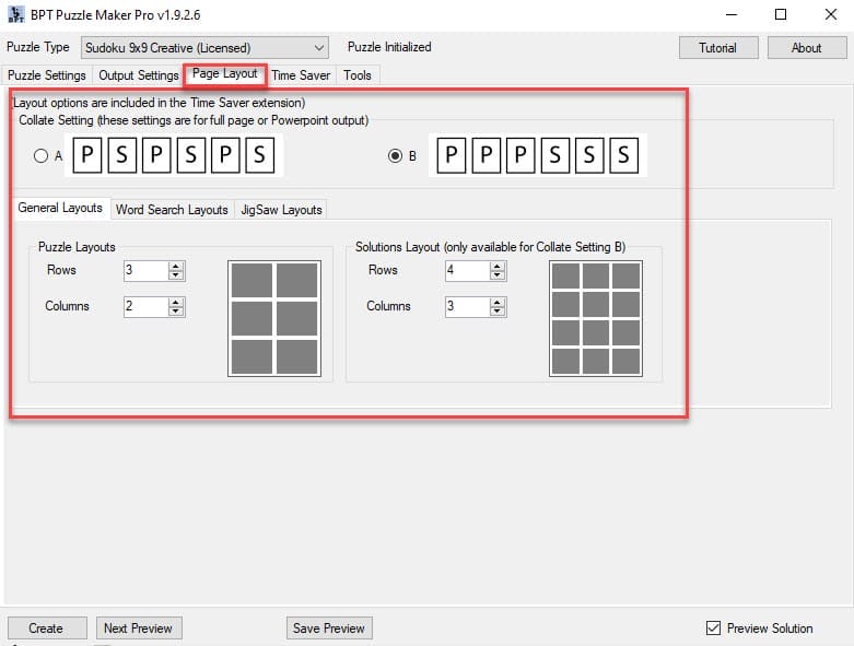 - It offers a flexible page layout system, and this will save you more TIME: When there was no Time Saver, you could copy and paste the puzzles, to create your own 2×2 or 2×3 puzzle pages. Which takes a lot of time. The Time Saver offers these options, so you get the layout you want with a single click.