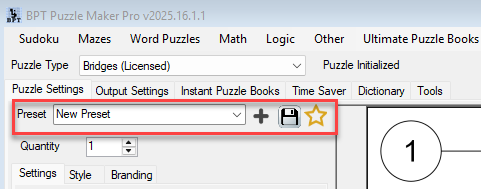 - If you already have presets, open the Preset dropdown (located above your puzzle preview area).