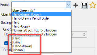- Click the ▼ dropdown arrow to view all presets for the current puzzle type.