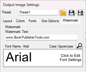 8. Watermark Height – The actual watermark is set on another tab, by default it’s set to “www.bookpublishertools.com”