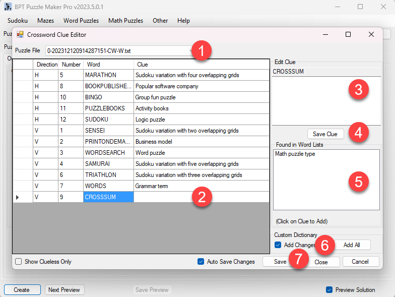 - Save / Close: Leave the Clue Editor Window. After this, Puzzle Maker Pro will automatically generate puzzle books for you.