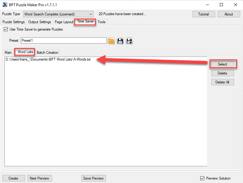 How to create a batch of Word Search puzzles with the Time Saver