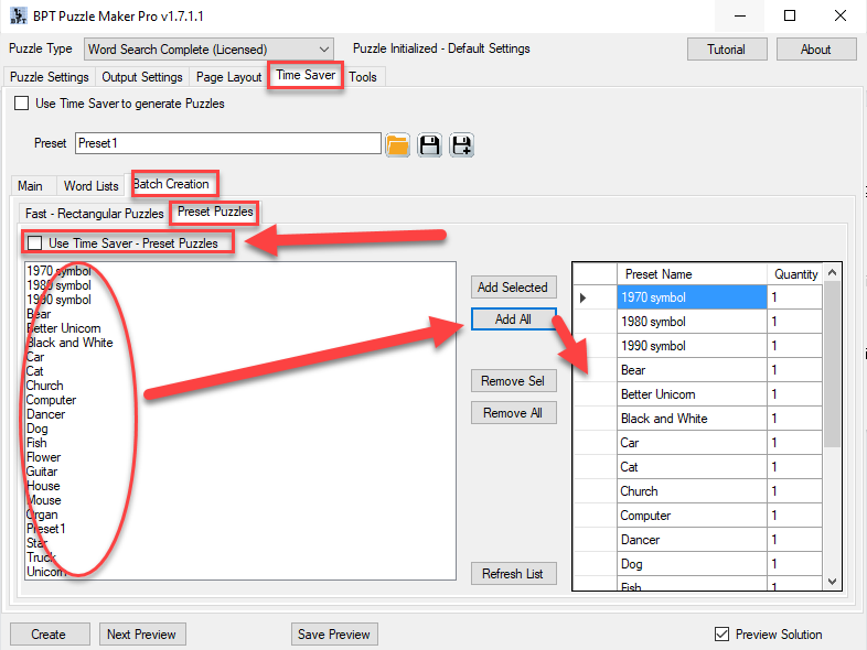 The Time Saver for Word Search is a little bit more complex to use than the other Time Savers within Puzzle Maker Pro. In this tutorial we’ll go over the three steps to create Word Search puzzles with the Time Saver: