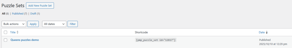 - Go to Puzzle Sets → All Puzzle Sets and click Edit on your new set.