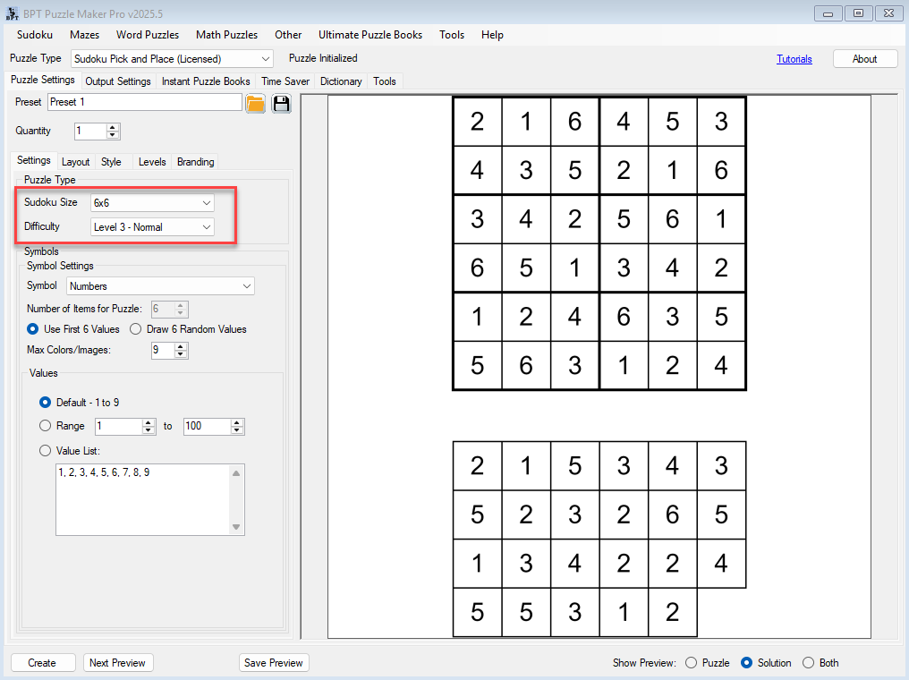 - Select Sudoku Pick and Place from the puzzle type dropdown