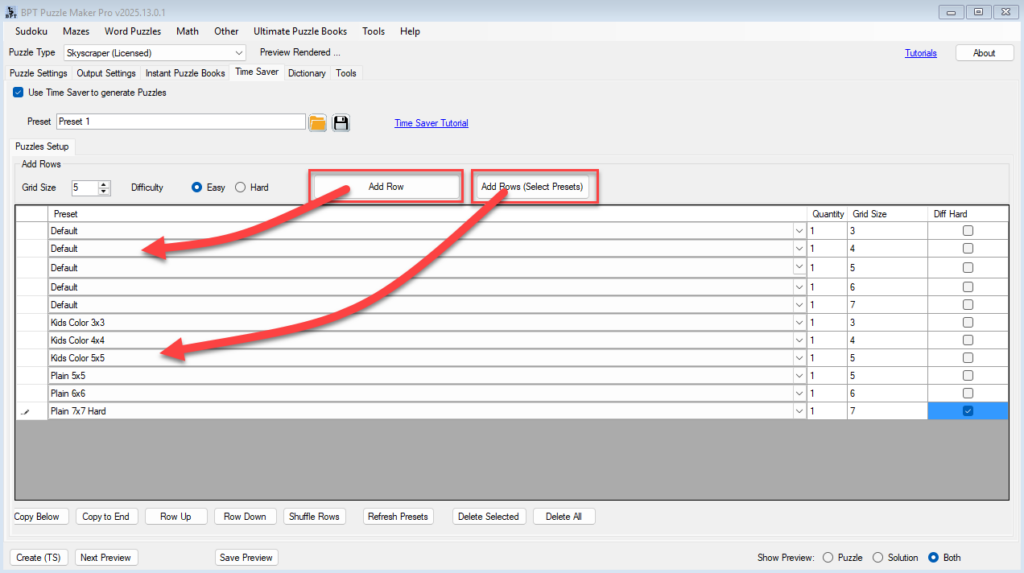⚡ Batch Creation with Time Saver (Skyscraper – Creator Edition) Quickly generate multiple puzzles with different grid sizes and difficulties — all in one go. 🗂️ Required Module 🛠️ Preparation Before using Time Saver: 🔢 Step-by-Step Instructions 1. Enable Time Saver Mode 2. Add Puzzles to the Table ➤ Option A: Add a Default Row