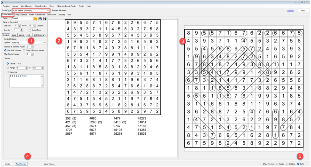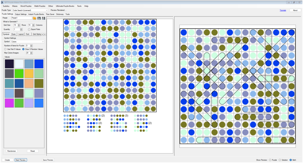 This tutorial explains how to create Code Search puzzles with Puzzle Maker Pro. The tutorial applies to: Introduction Code Search Code Search is a puzzle where you have to find a list of codes in a randomly filled grid. The codes can be numbers, letters, a combination of numbers, letters and other characters, Roman numerals, […]