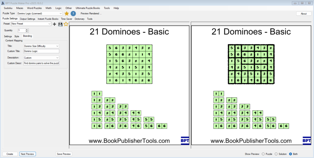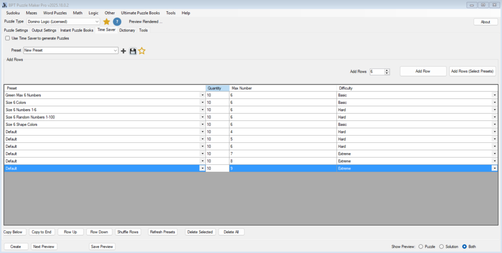 Batch Creation with the Time Saver Add-On (Domino Logic Creator Edition) Overview When you’re ready to scale your workflow, the Time Saver Add-On makes it effortless to produce multiple Domino Logic puzzles in one session.This tutorial explains how to use the Time Saver’s table layout to manage presets, control difficulty, and export entire puzzle books […]