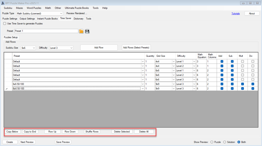 Overview This tutorial guides you through using the Time Saver feature in Puzzle Maker Pro – Math Sudoku Creator Edition to batch generate multiple Math Sudoku puzzles in one process. Time Saver lets you create large sets of puzzles with varied settings, saving you hours of manual work. Required Modules Preparation Before you start: Step-by-Step […]