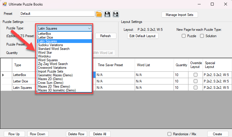 The first step for you is to create the presets that you want to use for each puzzle type. Although it is an additional step for Ultimate Puzzle Books, it also makes it a very powerful tool. You can use and combine all the features of the different puzzle modules in these mixed puzzle books.