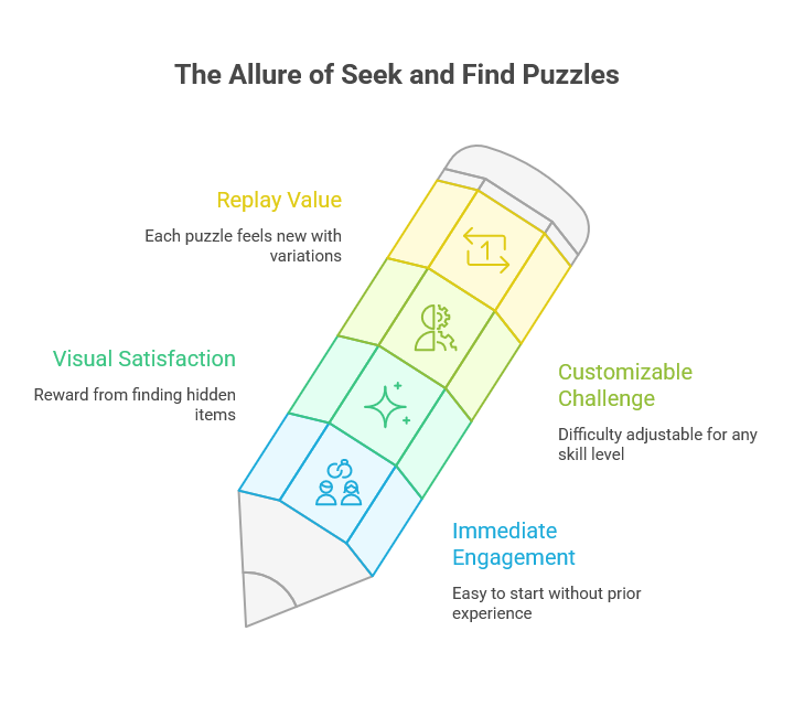 This balance makes Seek and Find puzzles as versatile as they are addictive.