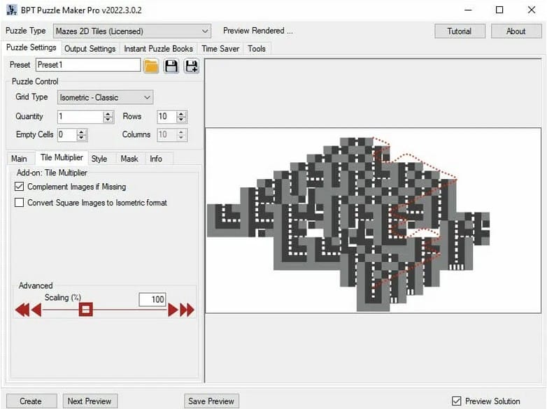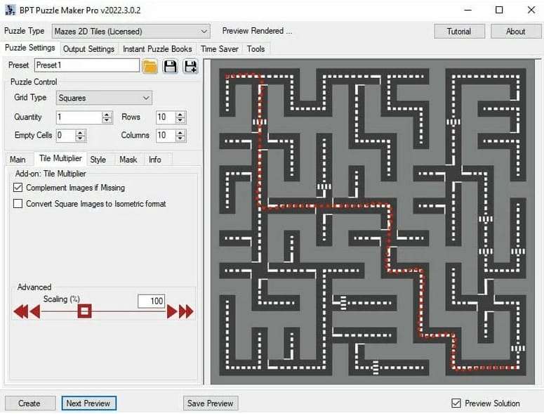 - Advanced/scaling: In most cases the conversion will be perfect. In some cases, Tile Multiplier may misinterpret the exact size of the tile due to DPI differences. If this happens you can use the Scaling slider to adjust the tile size. For more info on this, see our separate tutorial: Troubleshooting Mazes 2D Tiles.